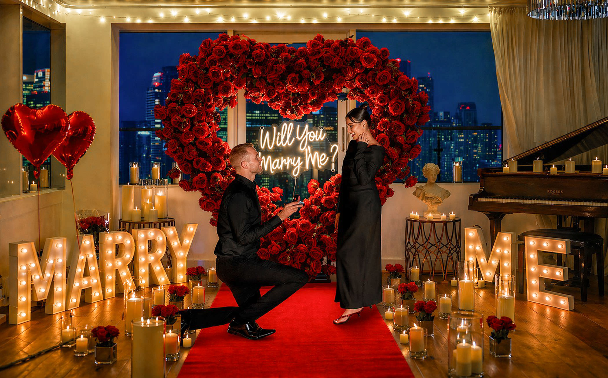 A sublime marriage proposal at a sky-high 30th floor penthouse lounge